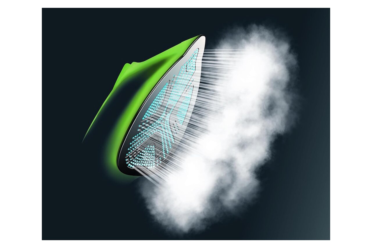 Grazie alla pressione di 7,4 bar e all’erogazione continua di vapore a 120 g/min, il ferro rimuove facilmente anche le pieghe più ostinate. La piastra Microsteam 400 3De, con 400 microfori, assicura una distribuzione uniforme del vapore su tutta la superficie, migliorando la scorrevolezza e riducendo il tempo necessario per la stiratura. L’innovativo sistema Eco consente di risparmiare fino al 25% di energia e acqua. Il serbatoio da 1 litro è sufficiente per sessioni medio-lunghe e può essere ricaricato facilmente. Inoltre, è fino a 4 volte più silenzioso rispetto ai modelli precedenti.