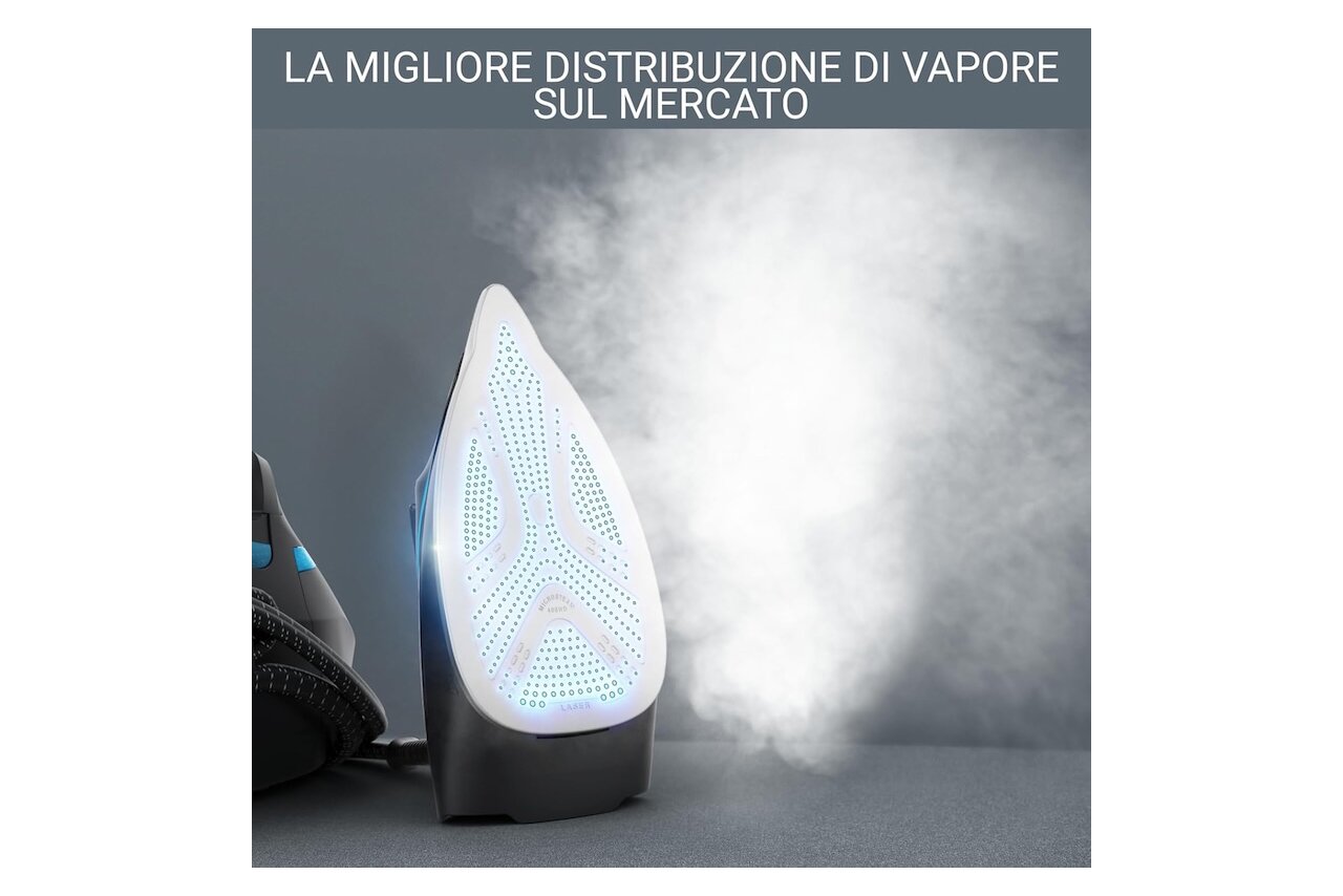 Il ferro offre un’erogazione di vapore continua da 140 g/min e un colpo di vapore impressionante da 480 g/min, utile per eliminare anche le pieghe più ostinate su jeans, lino o cotone pesante. La piastra Microsteam 400 laser assicura una diffusione omogenea del vapore e una scorrevolezza ottimale, mentre la punta di precisione facilita la stiratura di colletti, tasche e zone difficili. Il serbatoio da 1,3 litri è rimovibile e ricaricabile in qualsiasi momento,anche a caldo, e il sistema di spegnimento automatico assicura l’incolumità dell’utente. L’apparecchio è inoltre progettato per essere silenzioso.